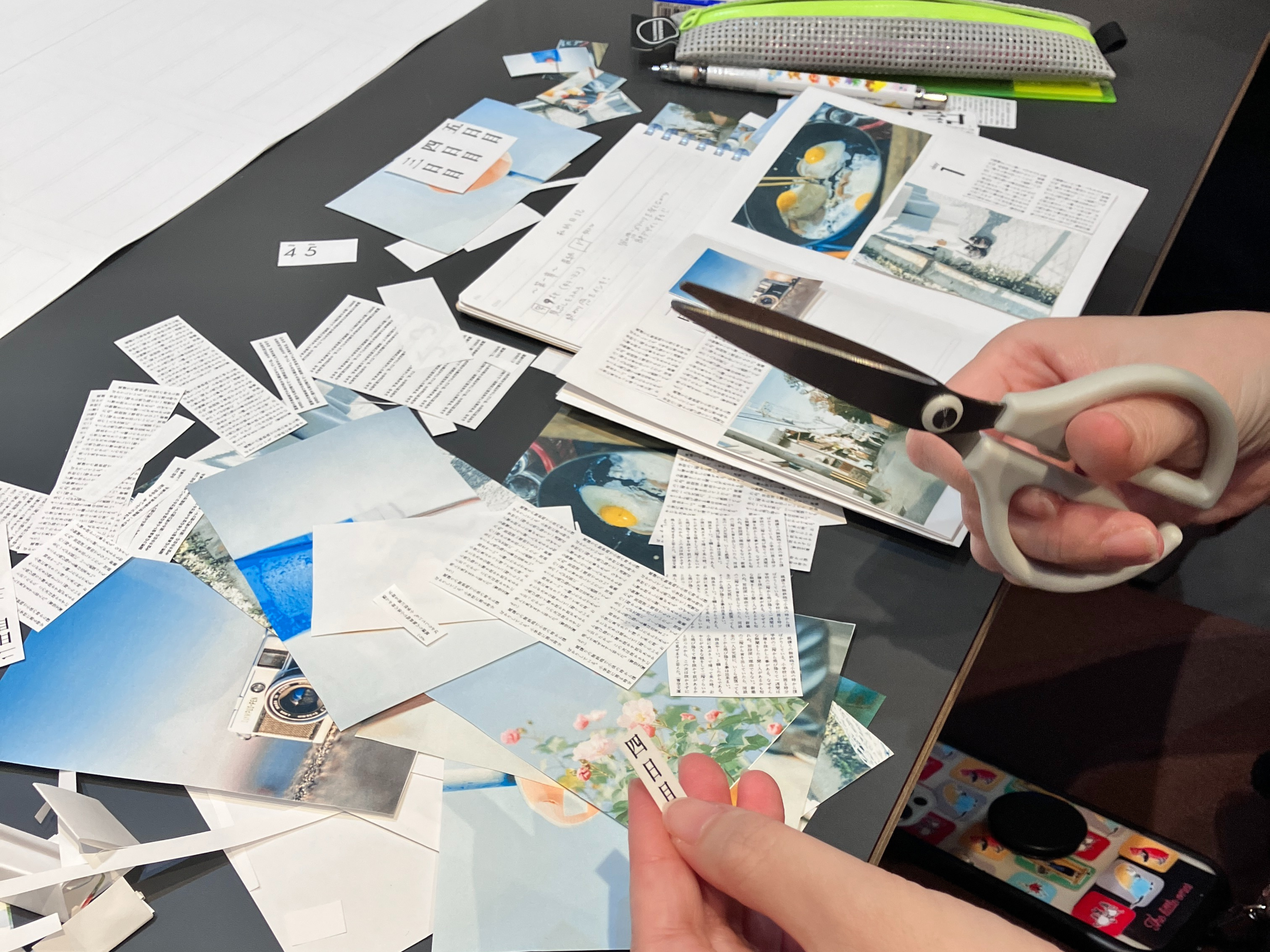 実践では、9枚の写真と文字・見出しを組み合わせて、8ページのZINEをつくるという課題に挑戦。